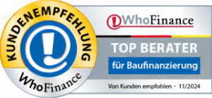 Beim Immobilienkauf zählt nicht allein die günstigste Zinskondition. Eine qualifizierte Beratung zum Finanzierungskonzept und ein persönlicher Ansprechpartner – von der Antragstellung bis hin zur letzten Auszahlung – sind von wesentlicher Bedeutung. Von Kunden empfohlen – lesen Sie selbst aktuelle Bewertungen auf dem neutralen Finanzportal WhoFinance.
